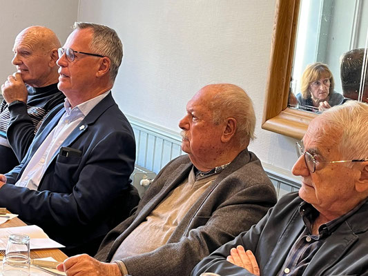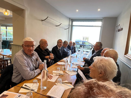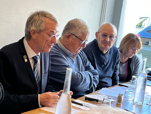 Le jour dit, lundi 6 octobre, nous nous retrouvons au Café du Centre pour un conseil d'administration ouvert aux membres des deux associations. Débuté à 10h30 après avoir admiré les panneaux de présentation du camp réalisés par Brigitte grâce aux documents fournis par André LOISEAU, le plus gros de notre ordre du jour concerne les nombreux événements de septembre ainsi que les grandes lignes de la programmation 2026.