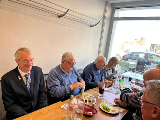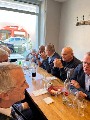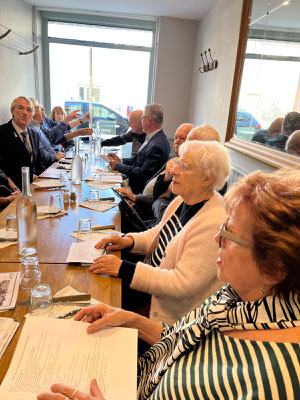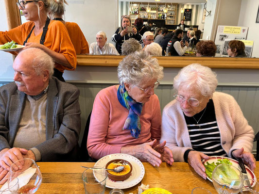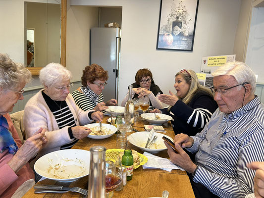Dans la même salle suit un repas, excellemment préparé par le chef. Plusieurs membres de Sath'nâ se joignent à nous, les conversations vont bon train tant nos champs d'action se complètent autour de l'histoire des deux communes et du camp militaire.