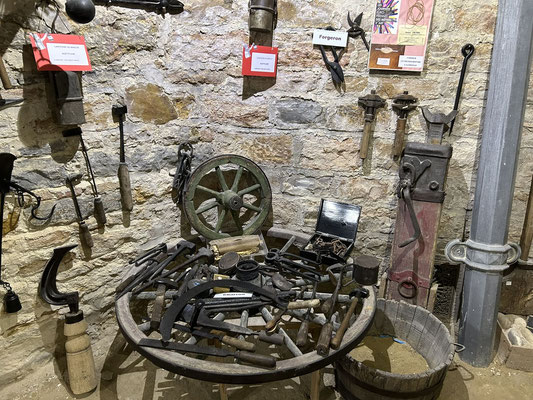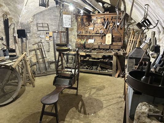 Les salles sont thématiques : cuisine, agriculture, élevage, enseignement, pompiers, artisanats tels que menuiserie et ferronnerie, etc. La richesse des collections est stupéfiante, les questions se pressent et nos hôtes nous régalent d'explications précises émaillées d'anecdotes savoureuses.
