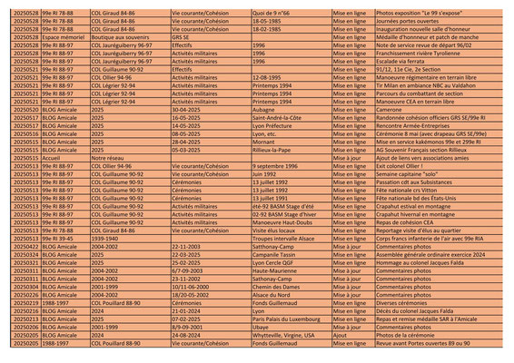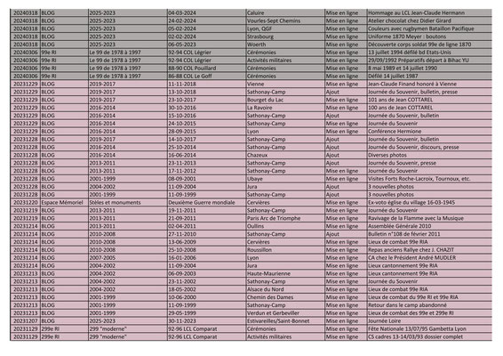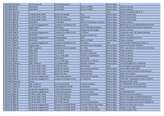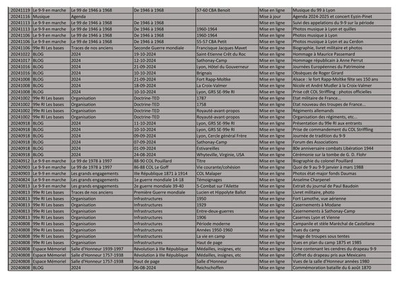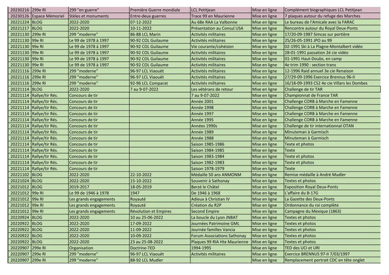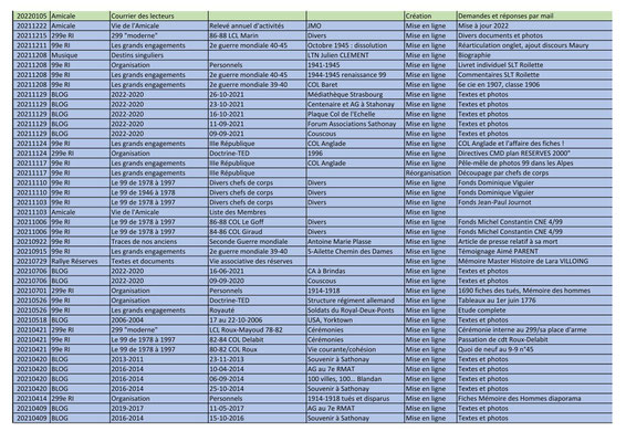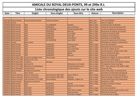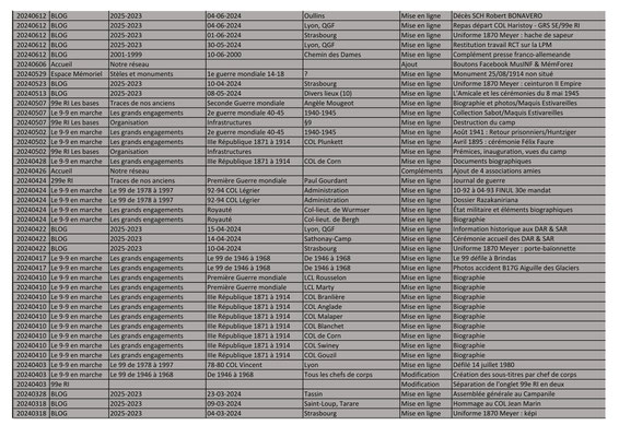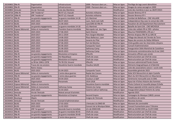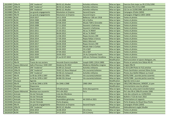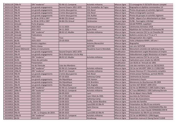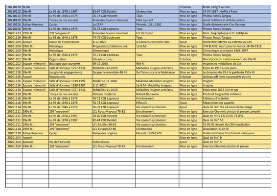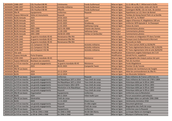L'ouverture du pdf ci-contre vous donne directement accès aux mises en ligne et modifications dans l'ordre chronologique, les plus récentes en tête.